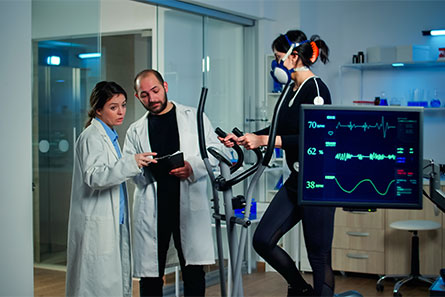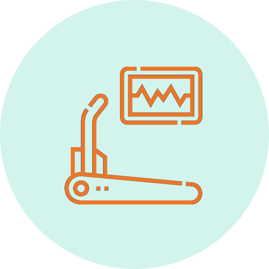 Cardiac stress test assessing heart performance during exercise to detect blockages, rhythm issues, or coronary issues.